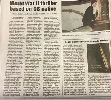 Tom Fields World War II thriller begins with Adolph Hitler's attempt to hold the Spear of Destiny! "Almighty Obsession" is inspired by the life of renowned fossil Hunter Alan Detrich. It describes the battle during World War II between good and evil to capture the Holy Lance! Is it possible to clone Jesus?
